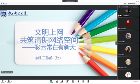 为了引导大学生文明上网,争做清朗网络空间的共建者、共享者,共同营造健康向上的校园网络环境,2022年9月26日,麻豆视频 2021级召开了“文明上网,共筑清朗网络空间”主题大会,会议由2021级辅导员王森主持,全体2021级学生参加会议。