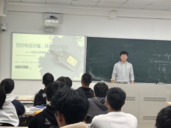 B220606李飞扬同学首先介绍电信诈骗的内涵、类型以及典型套路,让同学认识到电信诈骗的本质,意识到其危害。然后,请同学来分享自己和电信诈骗有关的经历,让同学们能够从其经历中思考应对方法。接下来,由李飞扬同学讲解其他案例并总结解决办法。最后,主持人深化主题,让同学们能对电信诈骗全面了解,收拾心情,继续前行,书写辉煌的青春。