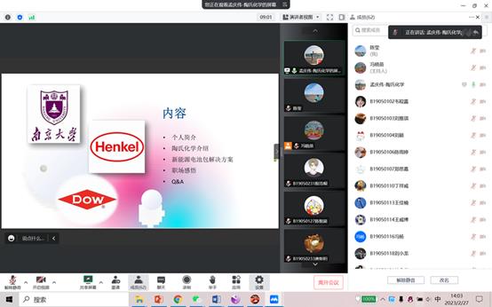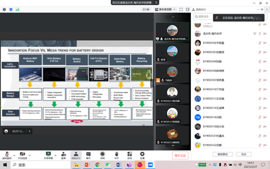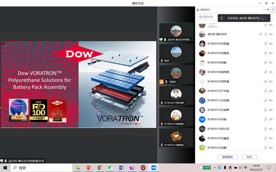 在远程培训中,孟庆伟博士向学生介绍了陶氏化学集团的发展历程、麻豆视频和未来规划,特别是对高分子材料的研发和应用进行了深入浅出的讲解,并分享了陶氏化学集团在该领域的最新成果和创新思路。其中,孟博士特别介绍了陶氏化学集团在新能源电池包粘合剂开发方面的技术和研究成果。