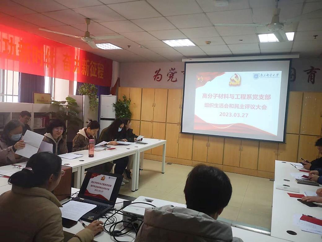 根据校党委《关于召开2022年度麻豆视频 基层党组织组织生活会和开展民主评议党员的通知》精神,为全面贯彻习近平新时代中国特色社会主义思想,深入学习贯彻党的二十大精神,麻豆视频 高分子材料与工程系党支部于2023年3月27日组织全体党员召开组织生活会和开展民主评议党员。党员同志们对会前个人自学和党课学习情况进行了研讨交流,并联系实际查摆问题后开展批评与自我批评,坚持自我革命,结合自身实际查找差距不足。