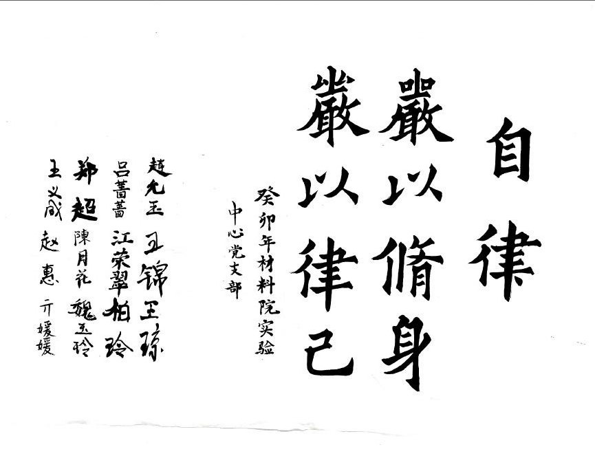 本作品主要表达自律是廉洁之本。党员同志要坚持严以修身,严以律己。自律的目的是为了廉洁,廉洁的最终目的是为了完善自我,促进工作。廉洁自律是党员必备的政治品格,是我党永葆生机的力量源泉。大家纷纷表示,此次廉洁书法活动丰富了廉洁文化内涵,发挥了廉洁文化的教育引导作用,作为一名高校实验技术人员,我们要立足本职岗位,加强自重、自省、自警、自励,树立良好的思想作风、工作作风和生活作风,永葆共产党人清正廉洁的政治本色。