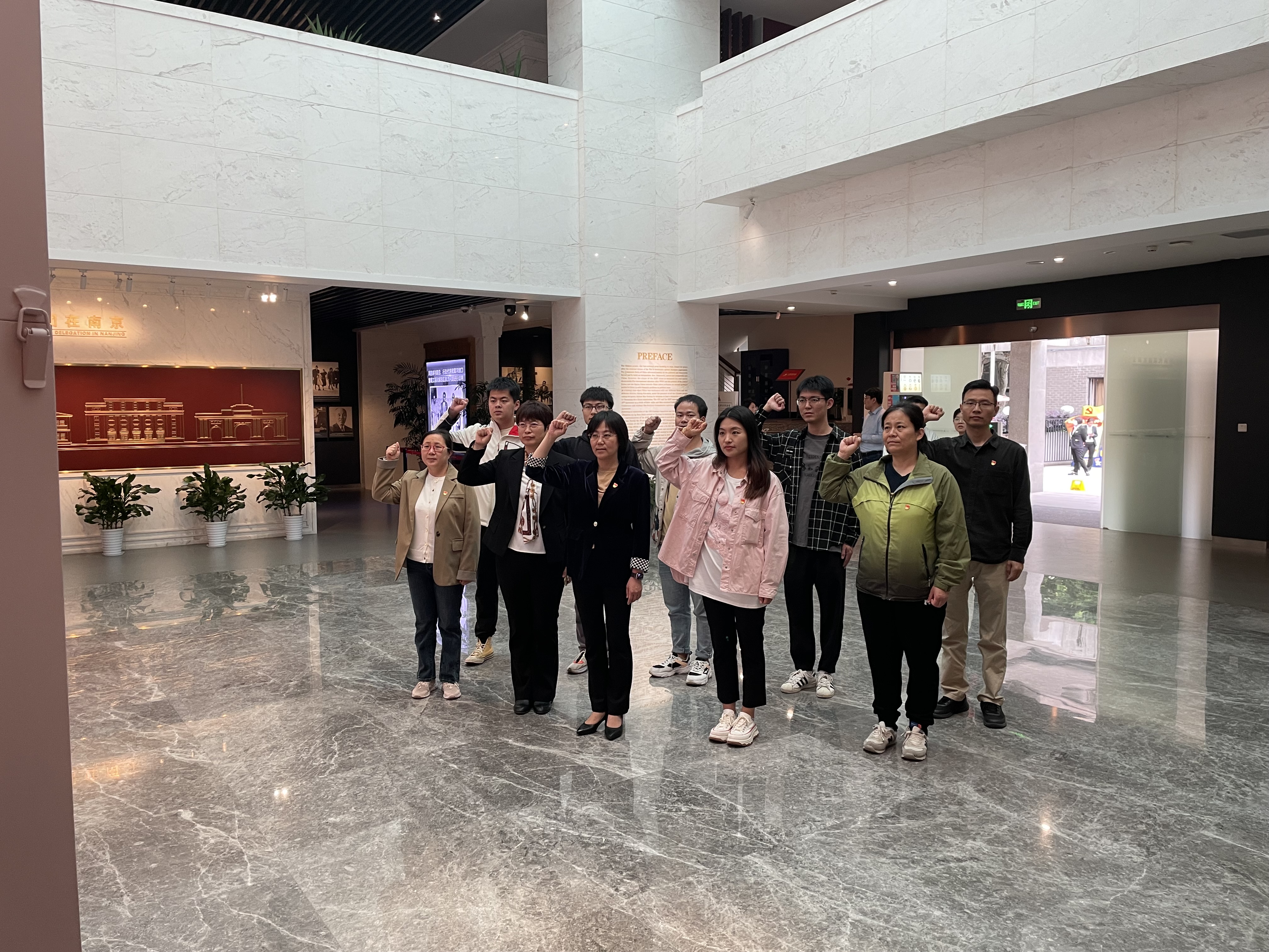 梅园新村纪念馆由中共代表团办事处旧址、国共南京谈判史料陈列馆、周恩来图书馆等组成。在史料陈列馆大厅,学院党委赵允玉书记带领党员骨干重温入党誓词,誓言铿锵有力,展现对党忠诚、为共产主义奋斗终身的坚定决心。