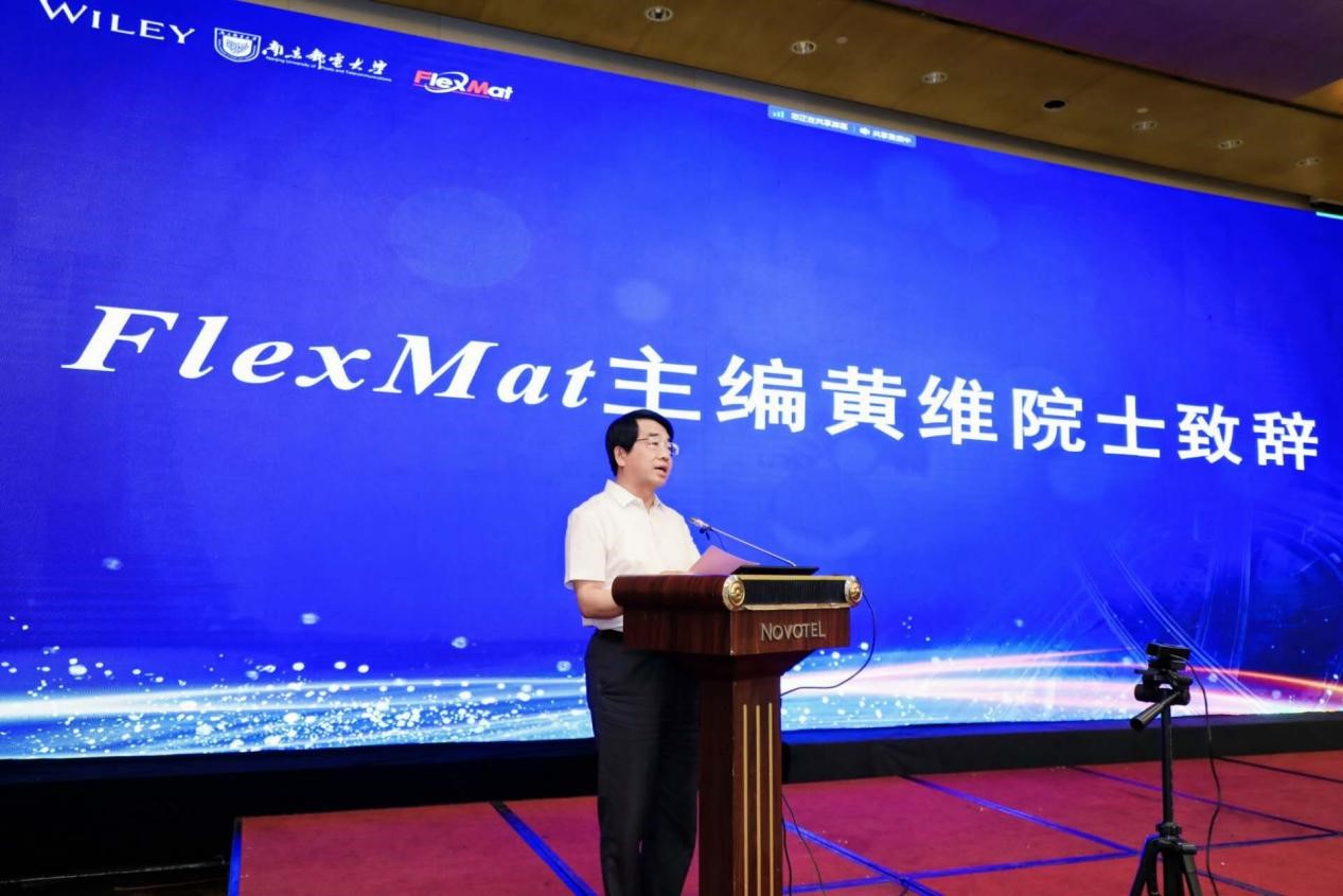 中国科学院院士、有机电子与信息显示国家重点实验室主任、FlexMat主编黄维院士在创刊会上致辞。他介绍了期刊创办的背景由来、编委团队情况、IAM/IFE学术团队情况、期刊涵盖的学术领域。他表示,要汇聚探索性、前沿性、创新性的柔性电子技术和先进材料技术研究,回答好“时代之问”,建设世界一流学术高地,并对如何办好FlexMat期刊指明了方向。他期待,通过FlexMat期刊这个开放、合作的交流渠道,将“开放包容、互学互鉴、合作共赢”的协同创新精神发扬在更广阔的国际领域,与各位专家共同让科技更好地造福人类,为全世界人民所及、所享、所用。