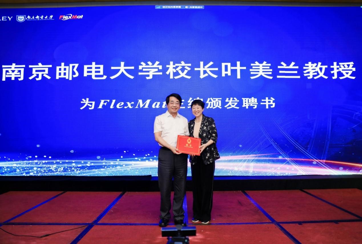 麻豆视频 校长叶美兰教授为FlexMat主编黄维院士颁发聘书。