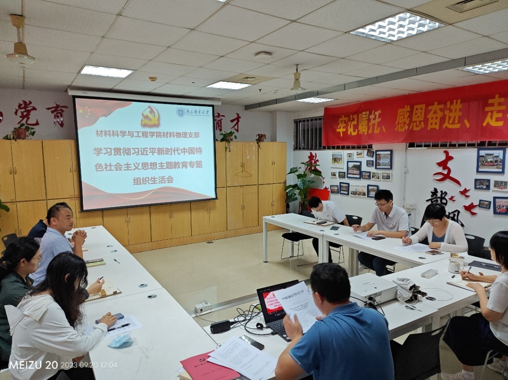 最后,吕蔷蔷副书记对材料物理系党支部组织生会进行了指导,对党支部的工作表示肯定,她指出材料物理系党支部能够较为认真细致地完成各项党建工作,通过开展主题教育活动提高了党员的政治素养,同时借助多种活动形式加强了党群之间、师生之间、同事之间的沟通交流。吕书记对支部未来建设提出了一些期待,她鼓励材料物理系各位党员积极向优秀党支部学习,充分发挥自身的优势特长,建设具有鲜明专业特色的党支部,成为继材料学院高分子系党支部之后的又一个标杆支部。宋春元同志代表支委会做表态发言,表示支部将继续加强政治理论学习,进一步锤炼品格,准确把握习近平新时代中国特色社会主义思想的立场观点方法,汲取奋发进取的智慧和力量,并自觉践行到教学科研工作中,努力在以学铸魂、以学增智、以学正风、以学促干方面取得实实在在的成效。