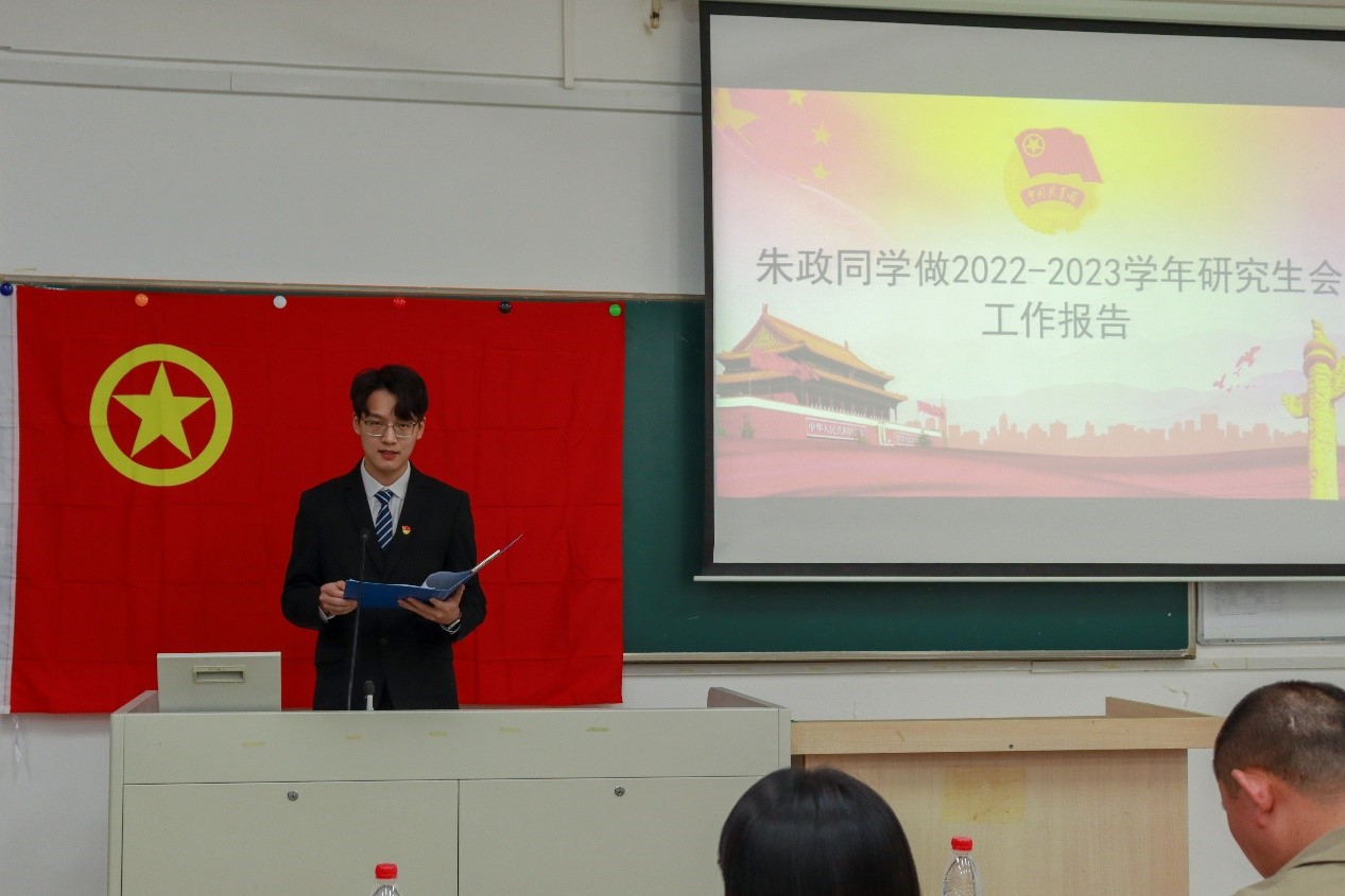 朱政同学代表2022届研究生会做工作报告,对过去一年研会的工作情况及取得成果作了全方位的总结,并明确提出了麻豆视频 研究生会各部门今后的工作规划,表达了对2023届研究生会的殷切期待。
