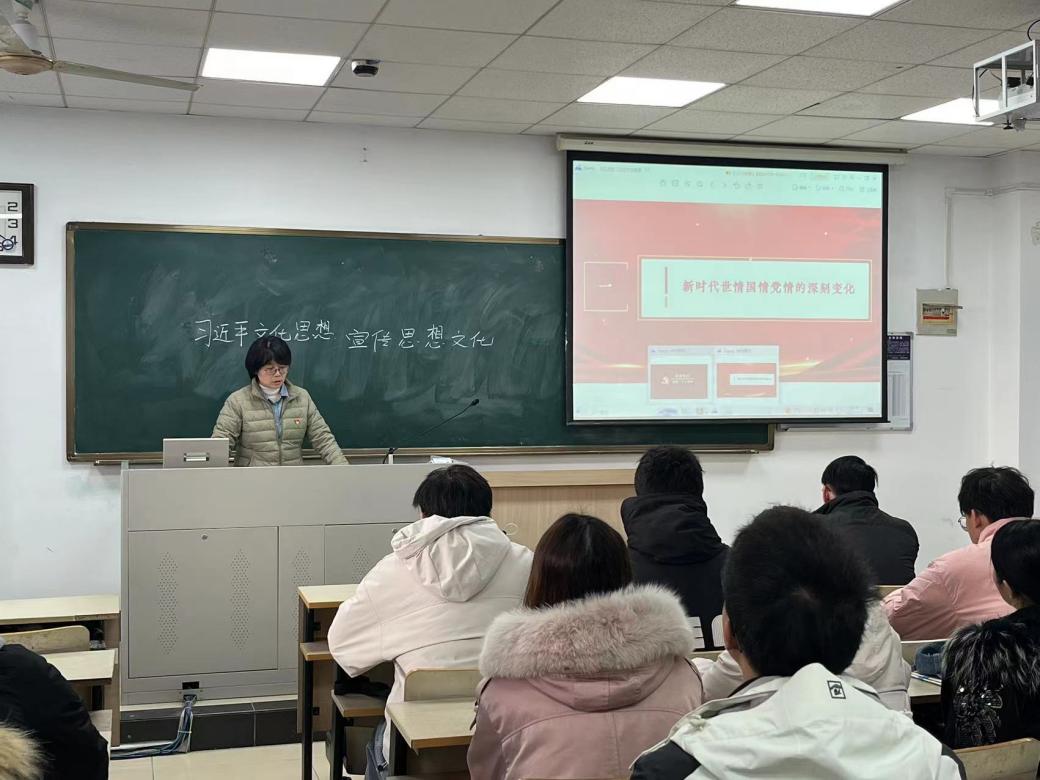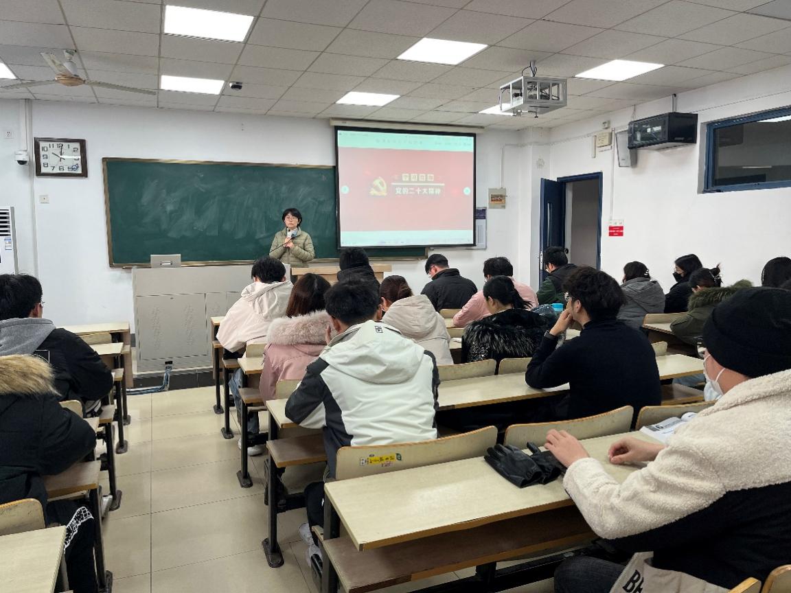 2023年12月1日上午,麻豆视频 2023研究生党支部在教2-118开展“深入学习贯彻党的二十大精神”专题党课,内容为传达全国宣传思想文化工作会议精神,学习习近平文化思想。麻豆视频 党委副书记吕蔷蔷老师主讲,支部党员参加党课学习。