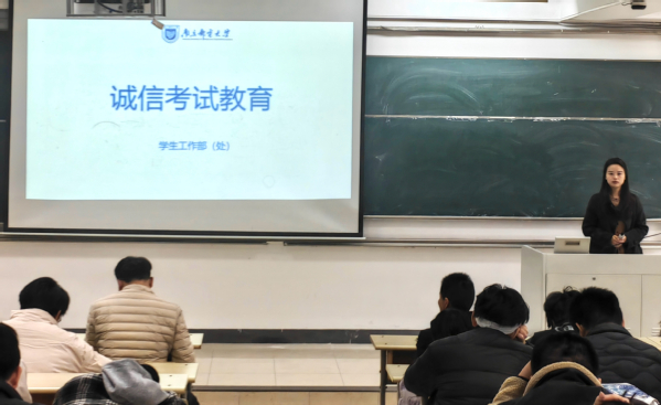 2023年12月14日,为强调诚信意识,维护考试公平,教育引导学生,麻豆视频 2022级全体本科生,在教3-101参与由2022级辅导员侍茜茜老师主持的考风考纪诚信考试教育大会。