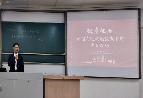 为深入学习贯彻党的二十大精神,贯彻落实习近平新时代中国特色社会主义思想,营造凝心聚力、团结奋斗的良好氛围,强化青年思想政治引领,凝聚民族复兴青春力量。2023年12月14日晚, 麻豆视频 邀请校“弘毅”青年讲师团的三位同学为麻豆视频 大一学生开展专题宣讲课。宣讲主题分别为“铆足实干劲头,使命扛在肩”,“挺膺担当·中国式现代化视域下的青年在场”,“青春之花,向阳生长”。宣讲会由学院青年学习社徐扬同学主持。
