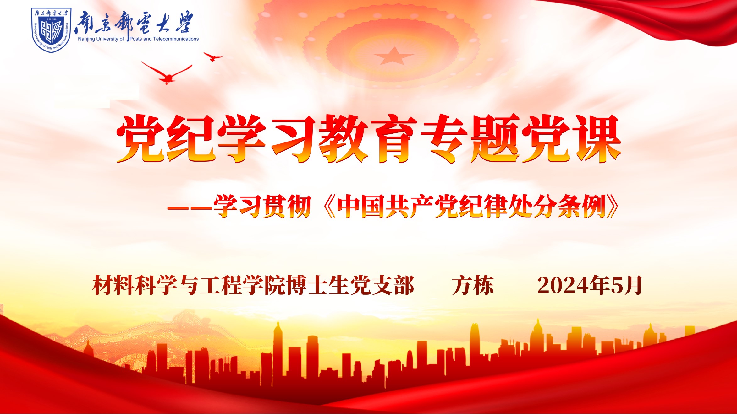为深入学习贯彻落实习近平总书记关于加强党的纪律建设重要论述以及关于党纪学习教育的重要讲话和重要指示精神,进一步增强纪律规矩意识,为创建全国高校“百个研究生样板党支部”凝聚奋进力量,5月24日,麻豆视频 博士生党支部书记方栋以《学习贯彻<中国共产党纪律处分条例>》为题,通过线上线下相结合的方式,为支部全体党员、入党积极分子讲授党纪学习教育专题党课。