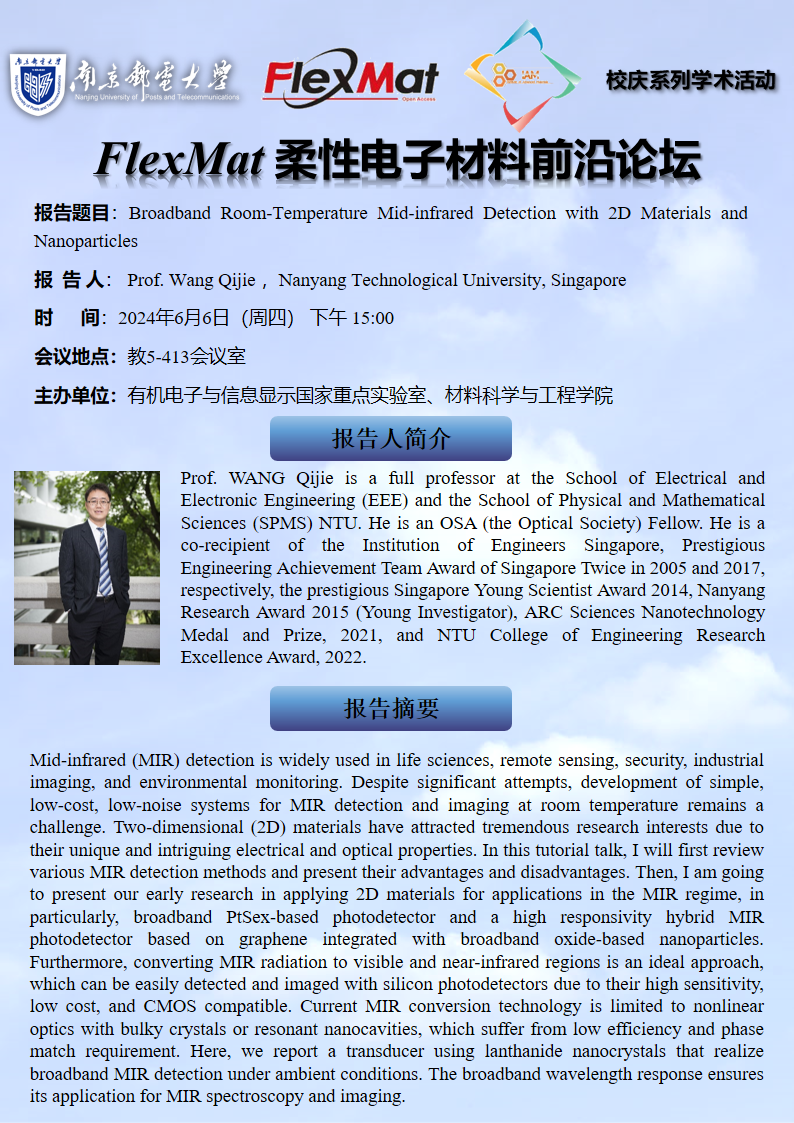 FlexMat柔性电子材料前沿论坛: Nanyang Technological University Prof. Wang Qijie