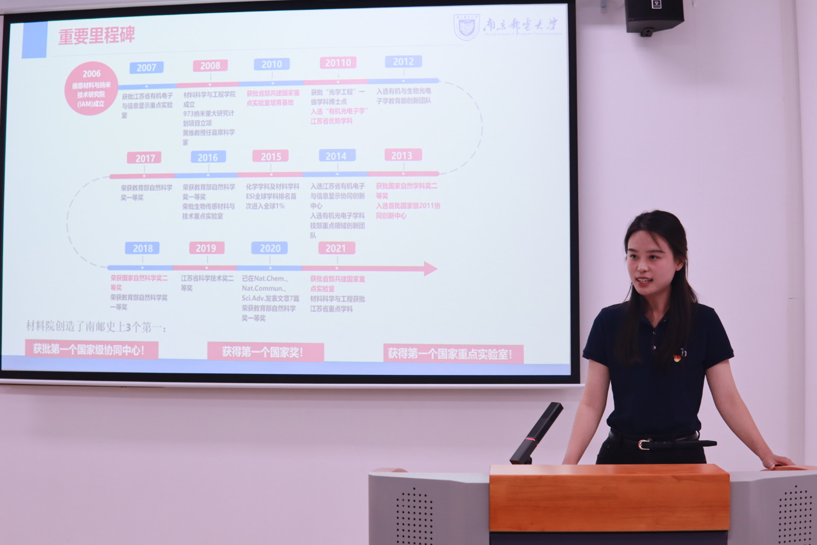 麻豆视频 材料学院2022级本科生辅导员、南京晓庄学院2019届毕业生侍茜茜老师分享了麻豆视频 黄维院士、汪联辉教授科技报国、留学报国的感人故事。作为我国“有机光电子学”学科的奠基人与开拓者之一,黄维院士始终深怀爱国之情,砥砺强国之志,力践报国之行,凭借披荆斩棘、勇往直前的“铁人精神”翻越了一座又一座科学高峰、培养了一批又一批学术领军人才。汪联辉教授放弃在国外的优越条件,选择返回祖国发展,带领材料学院实现了南邮国家级创新团队零的突破。作为海外归国科学家的优秀代表,汪联辉教授用“满头黑发变花白”诠释了海外归侨的南邮梦,彰显了归国科学家的赤子丹心!