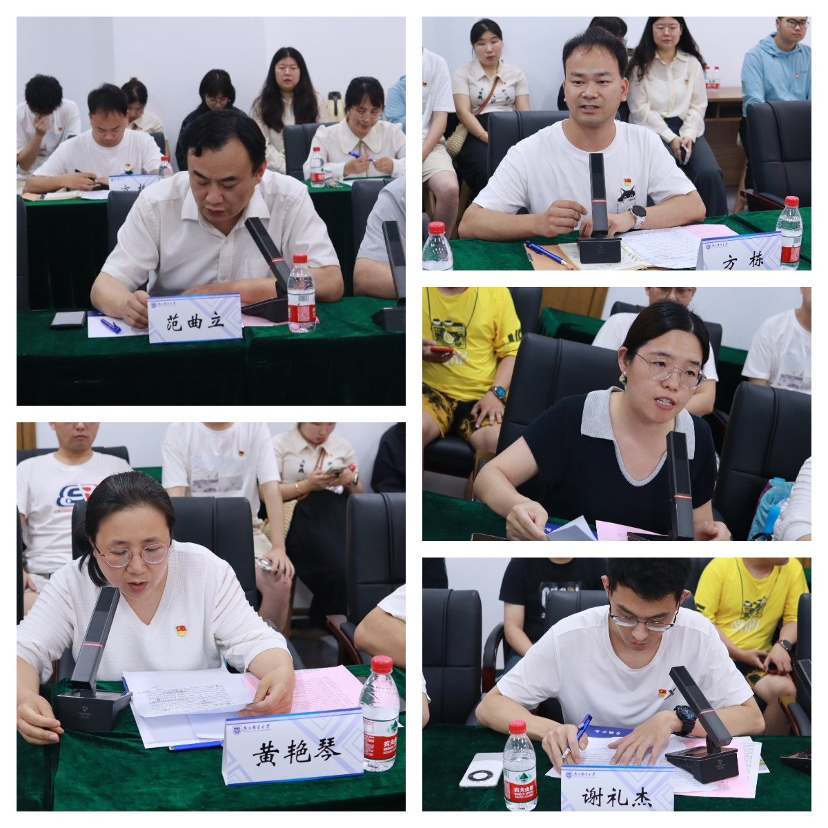 材料学院院长、致公党南邮支部主委范曲立教授,材料学院党委委员、江苏省特色党支部书记、教授黄艳琴,材料学院无党派人士、留学归国人员代表、副教授刘利会,全国高校“百个研究生样板党支部”、材料学院博士生党支部书记方栋同学以及材料学院生物电子所党支部委员谢礼杰同学围绕“如何充分利用致公党、欧美同学会等搭建平台载体,助力学校引才引智,推动师生创新创业,服务地方经济发展,努力在发展新质生产力、推动高质量发展上展现新作为”开展积极交流。