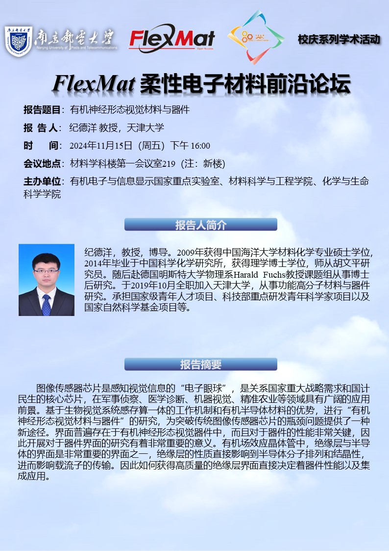FlexMat柔性电子材料前沿论坛:天津大学 纪德洋 教授