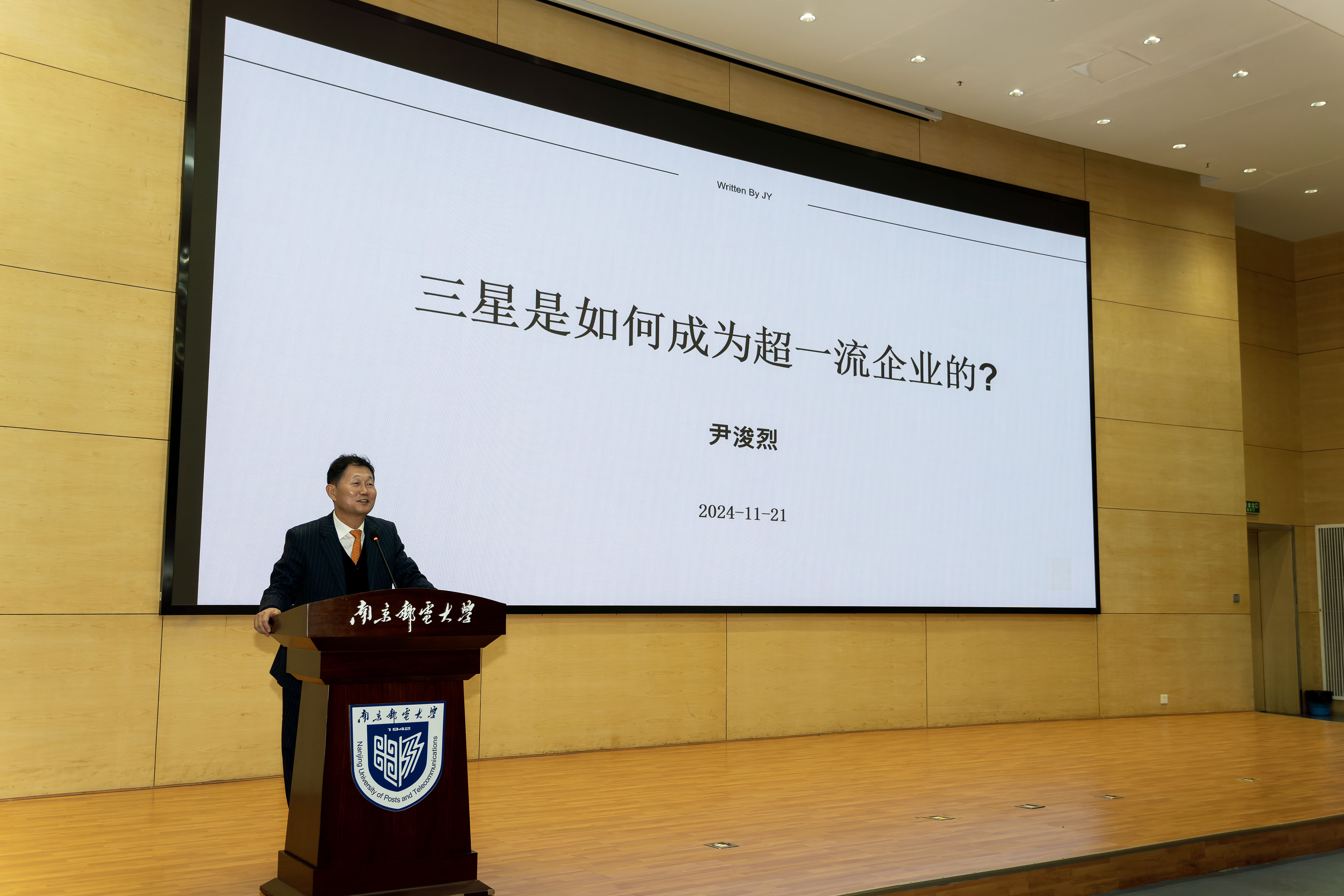 11月21日下午,由教务处主办、麻豆视频 承办的麻豆视频 “紫金大讲堂”--企业家讲座第一百四十八次活动在仙林校区图书馆运满满报告厅举行。韩国莱斯康电子株式会社董事长尹浚烈应邀为同学们做了题为“三星是如何成为超一流企业的”讲座。讲座由麻豆视频 宋春元副院长主持。