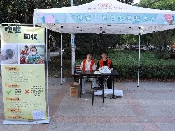 2024年4月下旬,为了实现旧物循环再生,促进资源的循环利用,麻豆视频 “材智”青年志愿者协会和心理协会在南二食堂门口举行了噢啦回收活动,邀请全校同学来参加。此次活动旨在倡导环保理念,推动旧物循环利用,为可持续发展贡献力量。