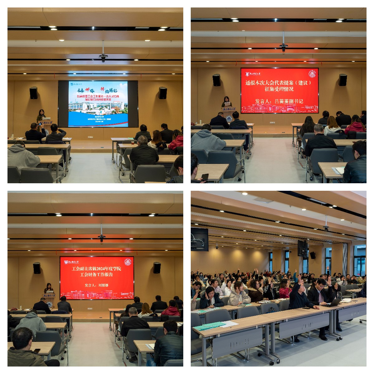 会议在庄严的国歌声中拉开帷幕,吕蔷蔷主席宣读校工会关于大会的批复意见,会议听取学院院长范曲立做2024年学院工作报告及2025年工作重点,工会主席吕蔷蔷做题为《以高质量工会工作服务一流人才方阵,凝心聚力共创卓越未来》的学院2024年工会工作报告,工会副主席刘丽娜做2024年工会财务报告,接着全体与会人员共同讨论麻豆视频 工作报告、第二届工会委员会工作报告和工会财务工作报告,并表决通过了以上工作报告。分工会副主席吕蔷蔷汇报了上次大会代表提案(建议)处理情况和本次大会代表提案(建议)征集受理情况。随着国际歌曲终,大会圆满落幕。