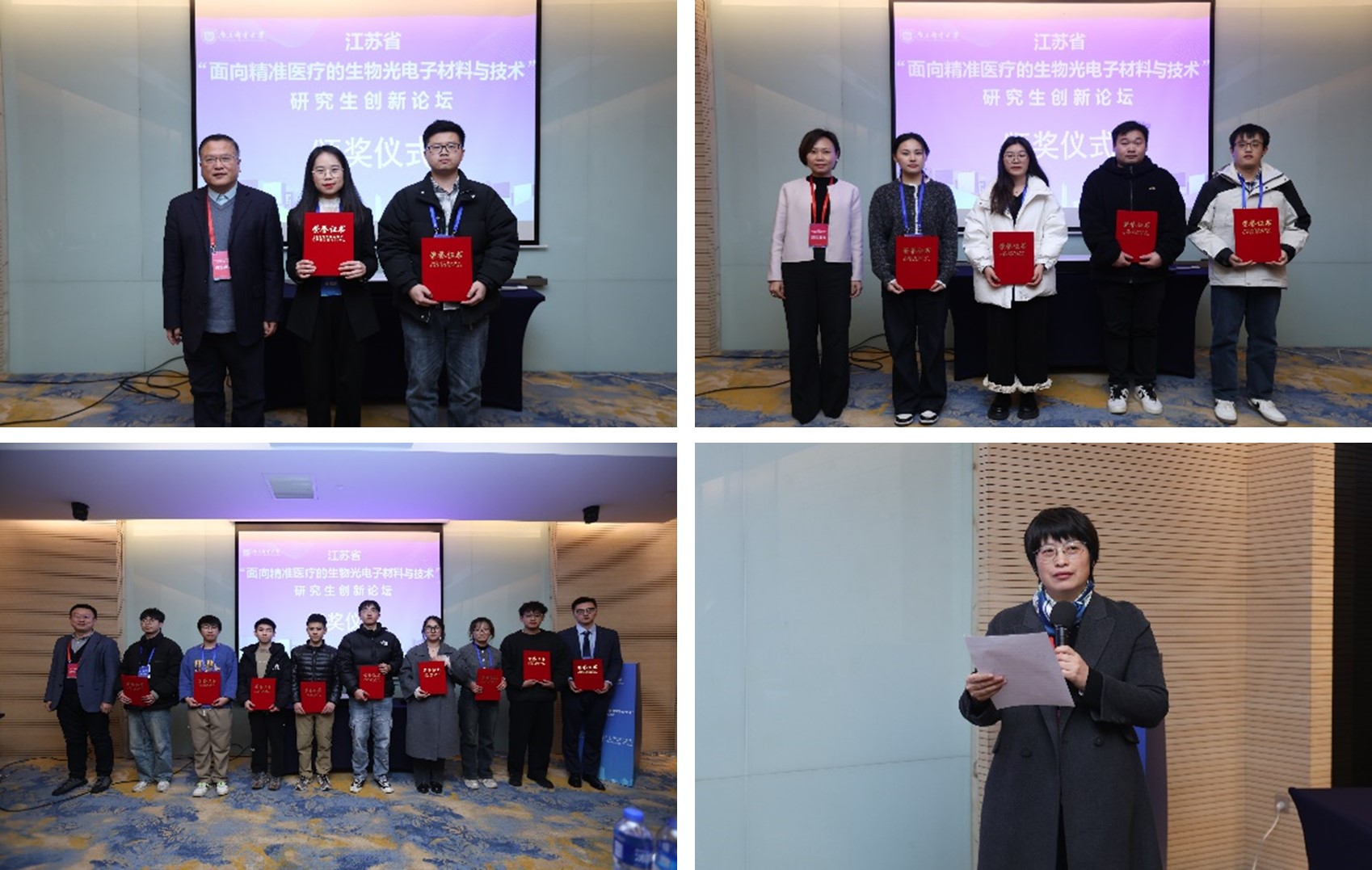 论坛各项议程由材料院教师侍茜茜老师主持。此次论坛围绕“面向精准成像与诊断的生物光电子材料与技术”和“面向精准治疗的生物光电子材料与技术”两大方向进行了学术报告。南京大学叶德举教授和南京医科大学胡本慧教授分别主持两部分的报告,并与同学们进行了探讨和交流,气氛热烈而融洽。随后,他们为每位作报告的同学颁发了荣誉证书。