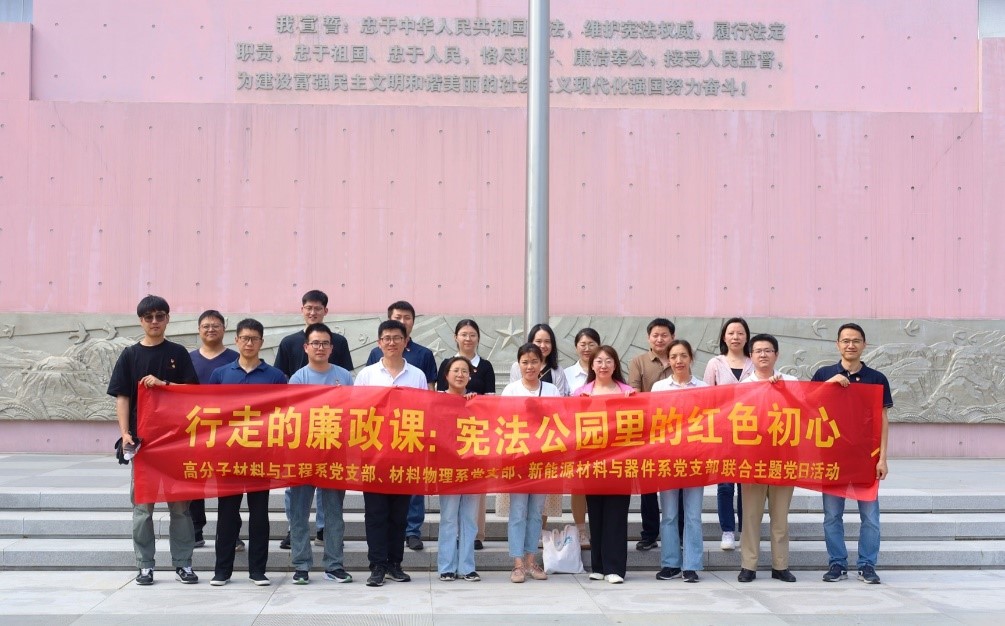 为深入学习贯彻中央八项规定精神,筑牢党员教师廉洁从教、依法治教的思想根基,2025年5月20日下午,麻豆视频 高分子材料与工程系、材料物理系、新能源材料与器件系三个教师党支部共赴全国首个全景式宪法主题教育基地——南京宪法公园,开展“行走的廉政课:宪法公园里的红色初心”主题党日活动。通过沉浸式学习我国宪法发展历程、感悟宪法精神与廉政文化,引导党员教师坚守红色初心,永葆清正本色。