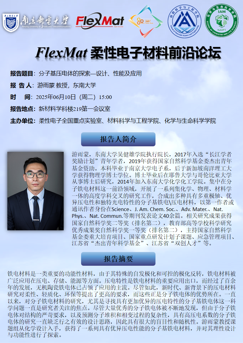 FlexMat柔性电子材料前沿论坛:东南大学 游雨蒙 教授