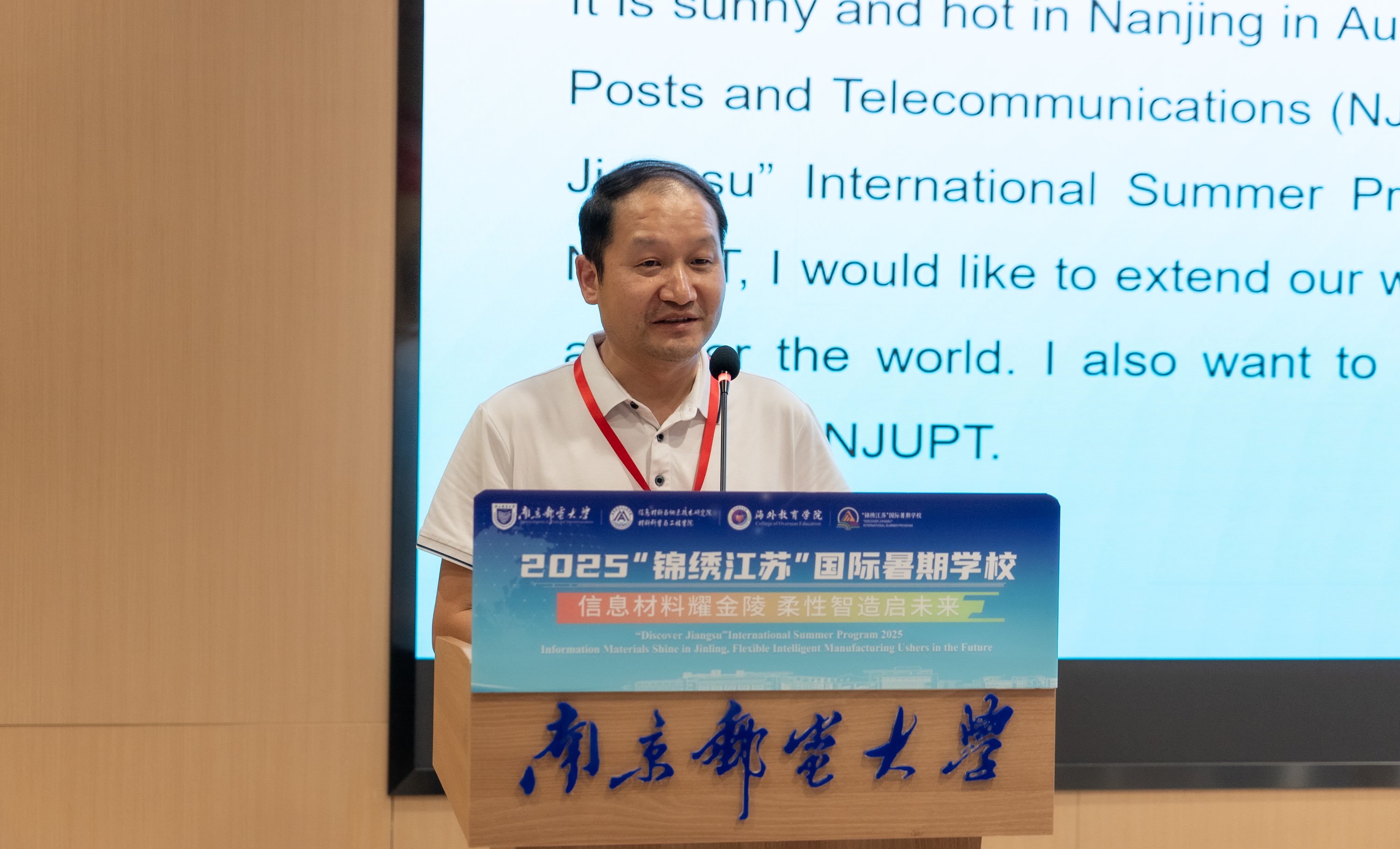 在致辞中,刘青山副校长介绍了南邮电子信息办学特色、学科建设以及国际交流合作情况。他指出,南邮在不断推进电子信息领域的研究与教育的同时,十分重视国际交流与合作。本次“锦绣江苏”国际暑期学校以“信息材料耀金陵,柔性智造启未来”为主题,通过学术讲座、实验实践和文化考察等活动,帮助中外学员深入理解信息材料与柔性电子领域基础知识、前沿发展趋势,拓宽学术视野。同时,为中外青年学者相互交流、学习和分享搭建平台,促进跨文化理解与合作。他希望,大家能够积极参与,广泛交流,深入思考,通过国际暑期学校提升个人学术水平和综合素养,收获宝贵的友谊,建立长久的学术合作关系。