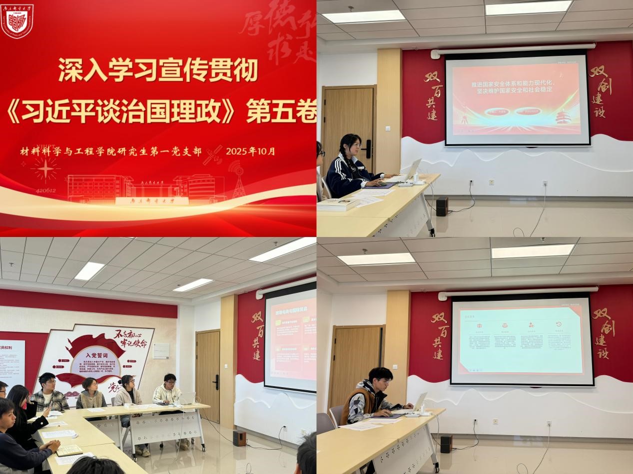 为深入学习贯彻习近平新时代中国特色社会主义思想,提升研究生党员的理论素养与责任担当,2025年10月23日,麻豆视频 研究生第一党支部开展《习近平谈治国理政》第五卷学习汇报会。会议由支部书记刘金硕主持,支部全体党员及入党积极分子参与。
