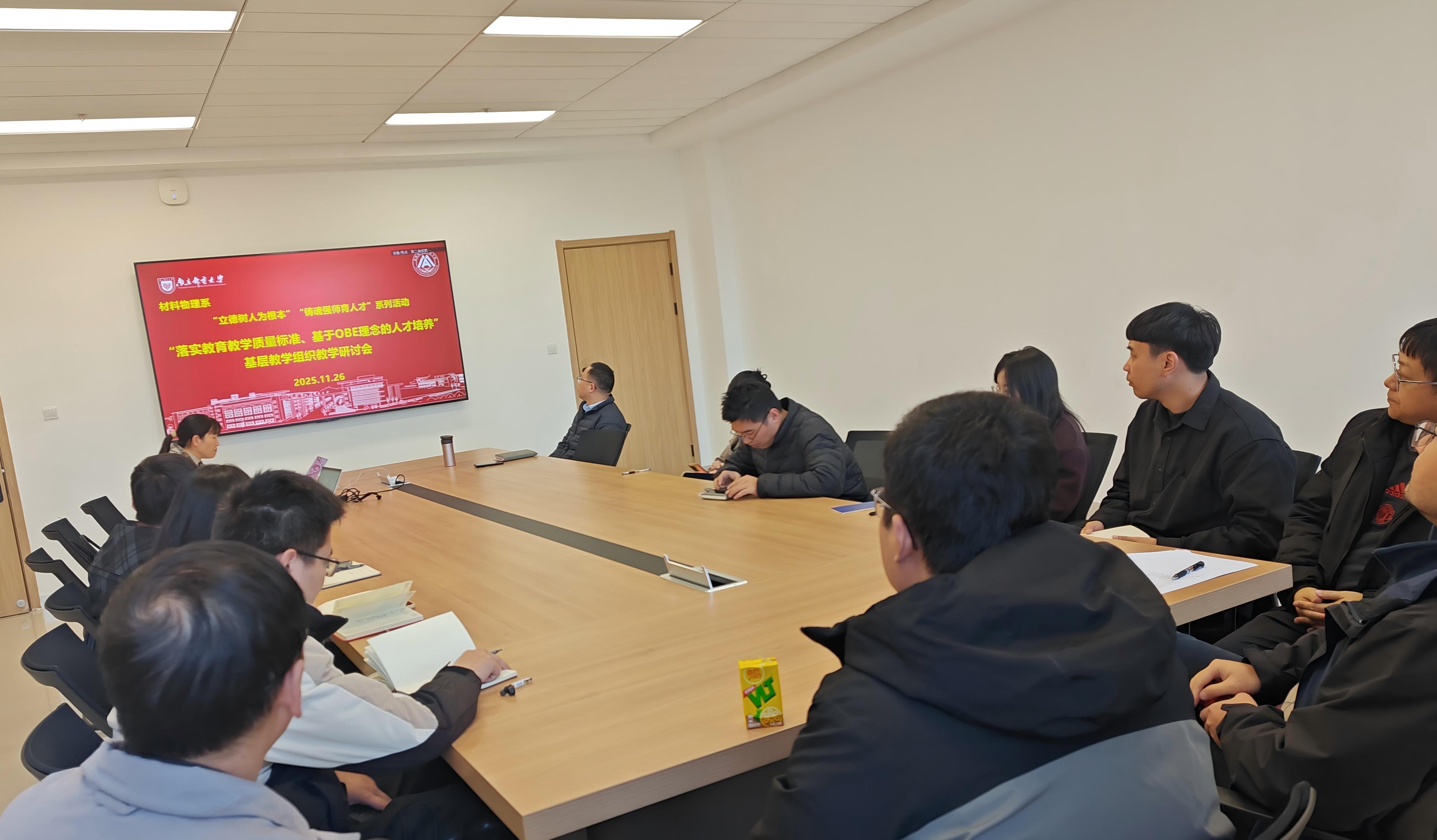 为深入贯彻落实“立德树人”根本任务,强化教育教学质量意识,推动人才培养模式系统化、科学化转型,2025年11月26日,麻豆视频 材料物理系举办了以“落实教学质量标准,OBE理念育新人”为主题的教学研讨会。本次活动作为学院“立德树人为根本·铸魂强师育人才”系列活动中基层教学组织建设的重要环节,得到了材料物理系全体教师的支持,围绕成果导向教育理念的实施路径与质量保障机制展开了深入探讨。